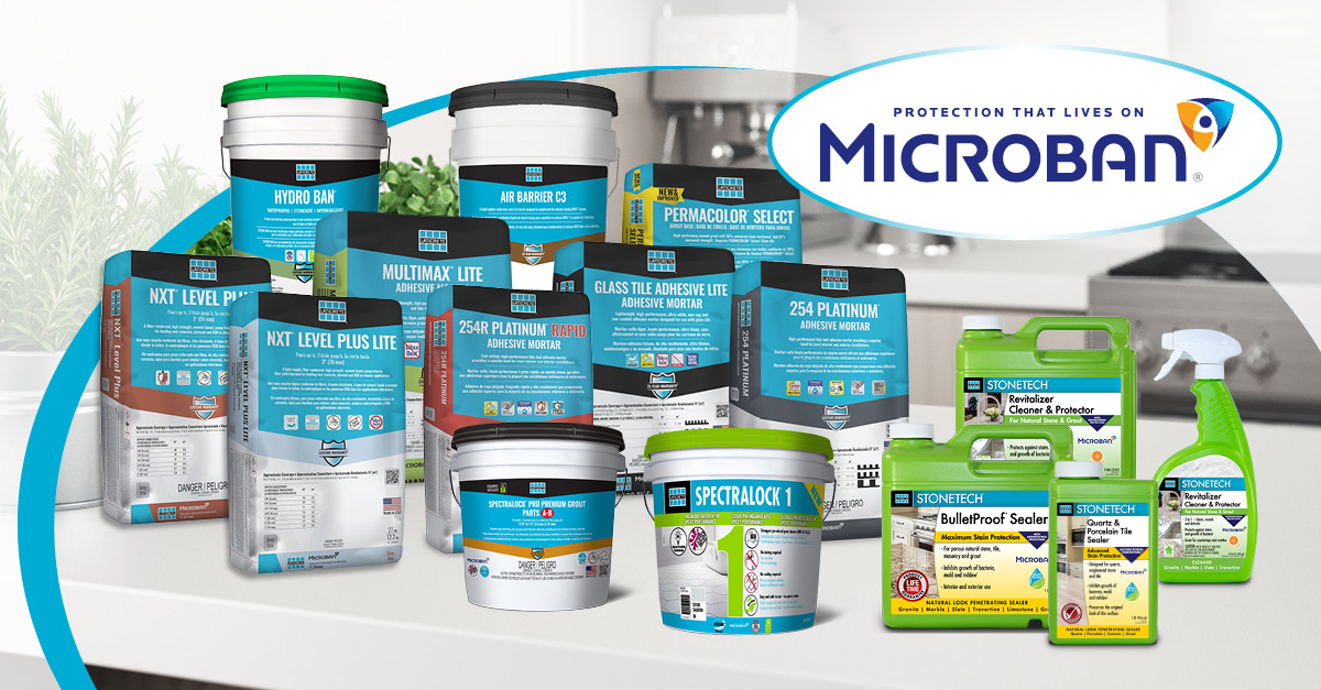 LATICRETE le ofrece la gama más completa de productos diseñados con el agente antimicrobiano Microban protección del producto.