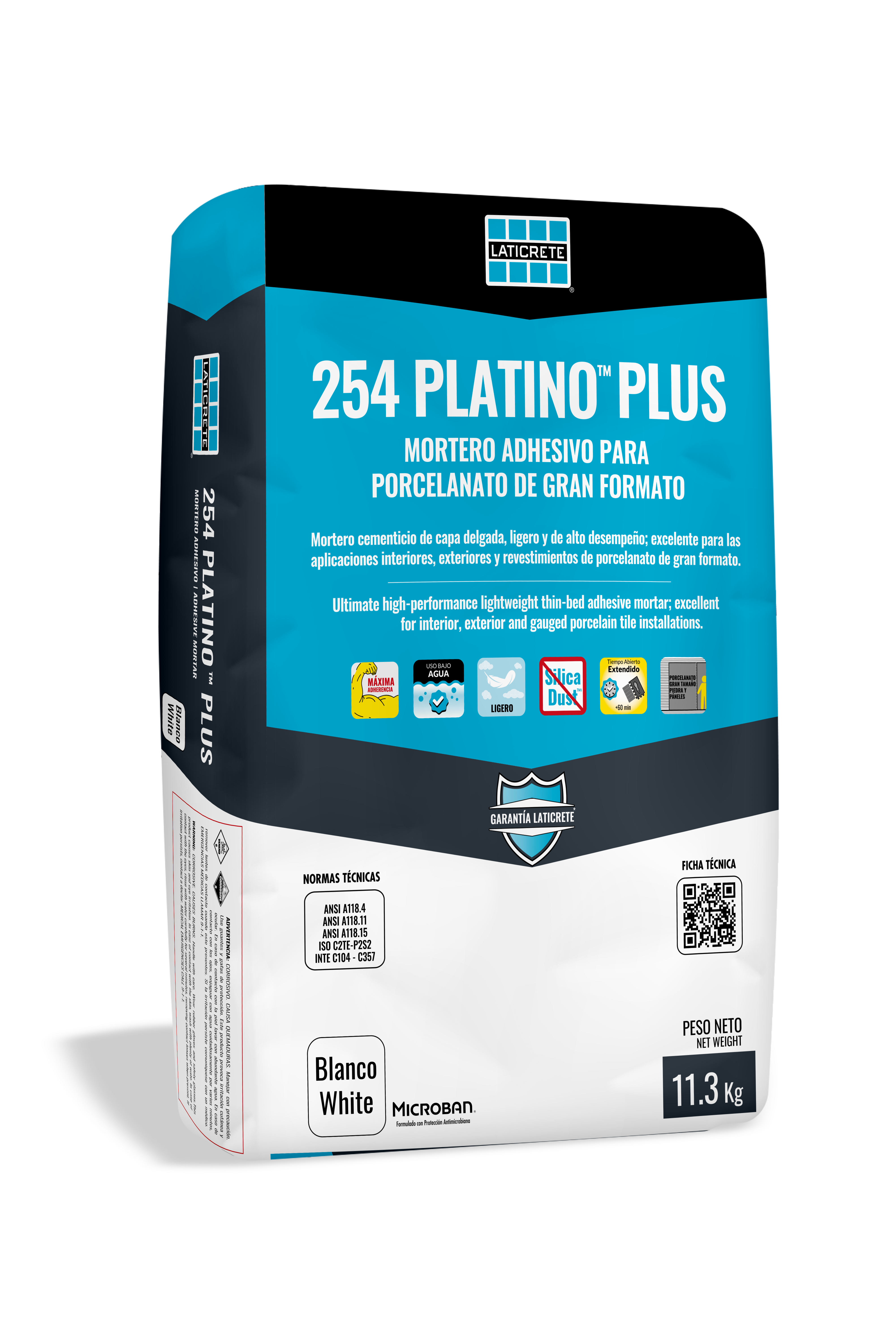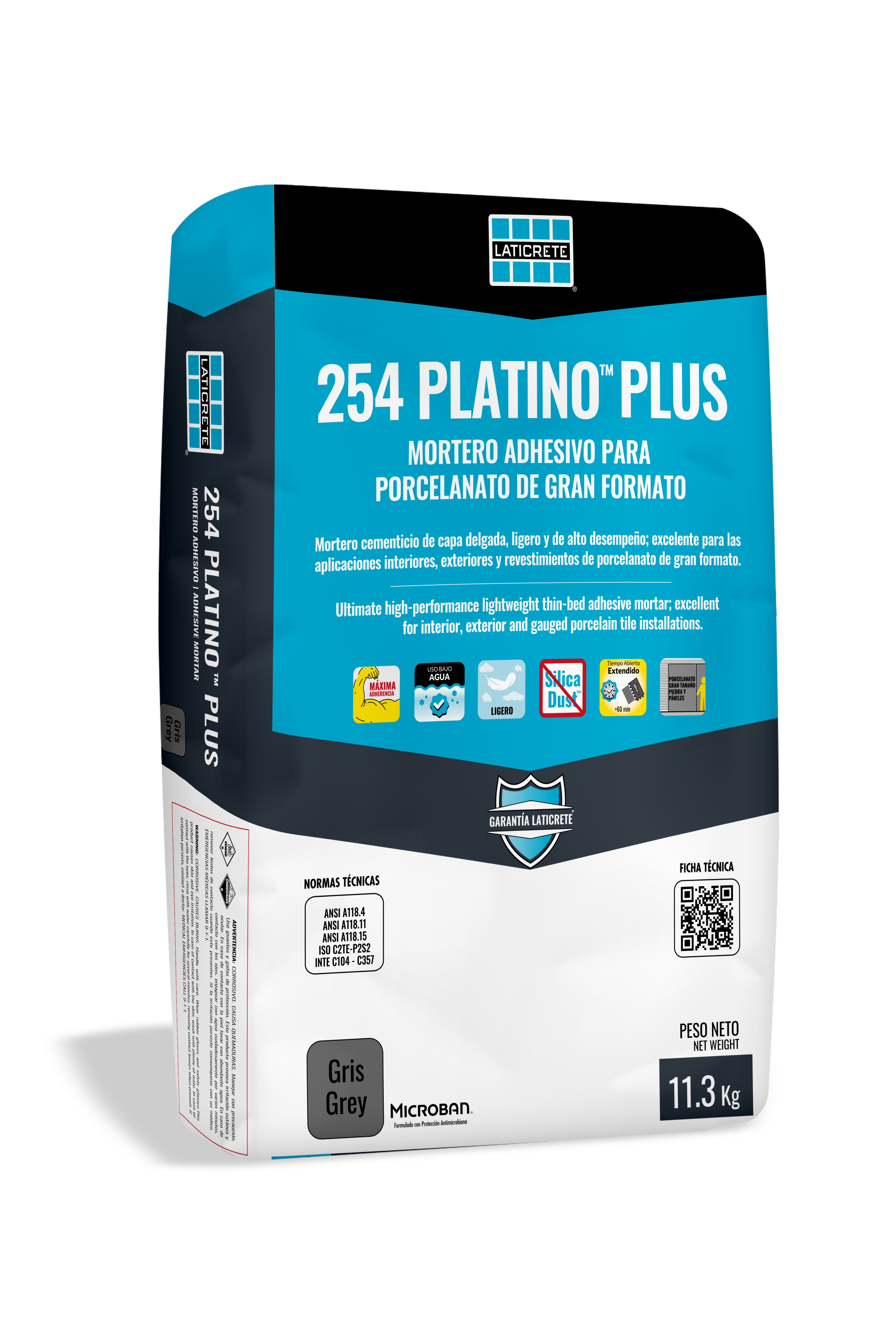 254 PLATINO(TM) Plus is a high-performance, lightweight, polymer-fortified, thin-set adhesive mortar designed for interior and exterior applications, making it versatile for any project. Achieve exceptional results with this thin-set mortar that allows for the safe installation of ceramic tile, porcelain, stone, quarry tile, pavers and brick.
