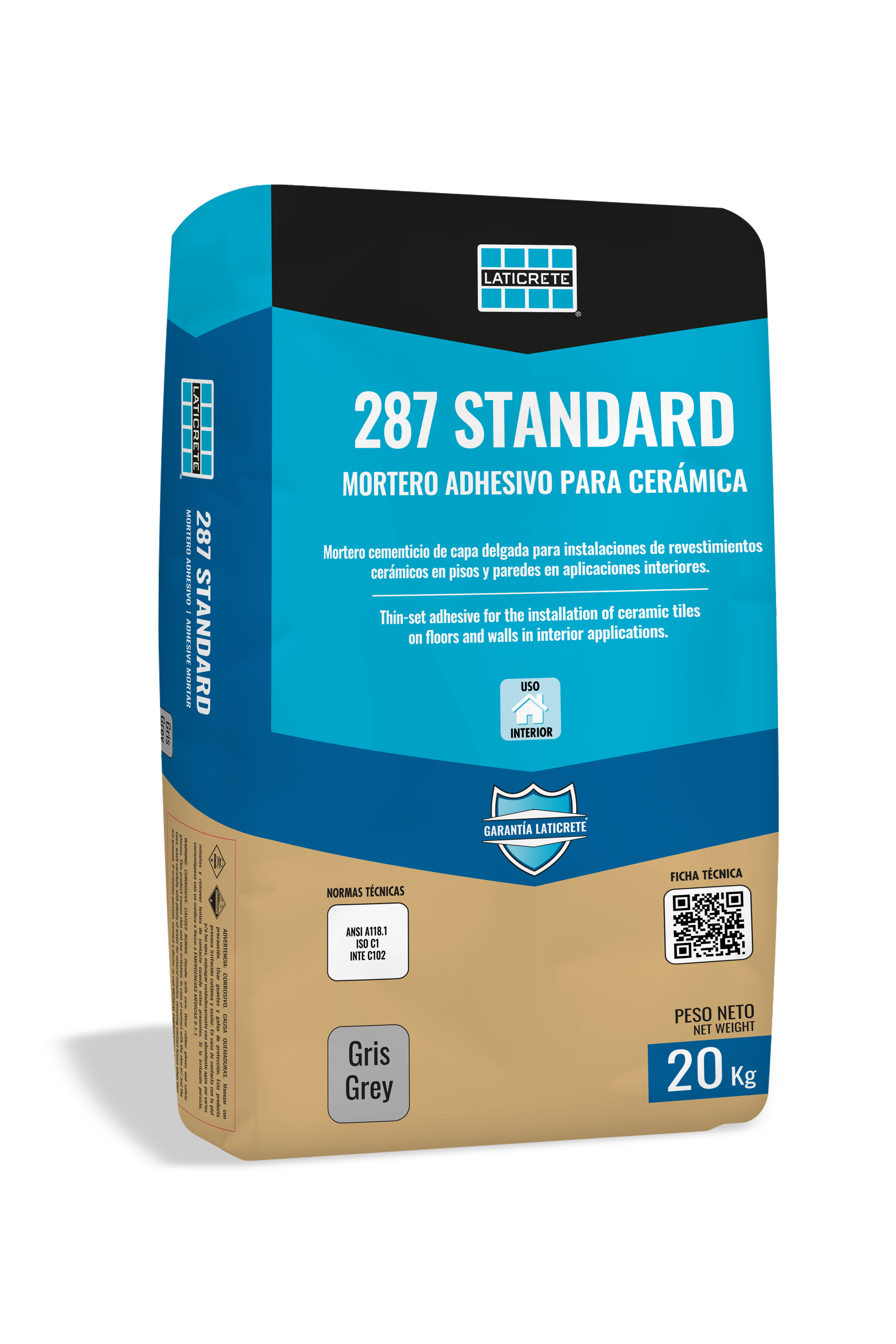 287 Standard mortar is a cement-based hydraulic adhesive that is mixed with water to install ceramic coatings using the thin-bed installation method.
