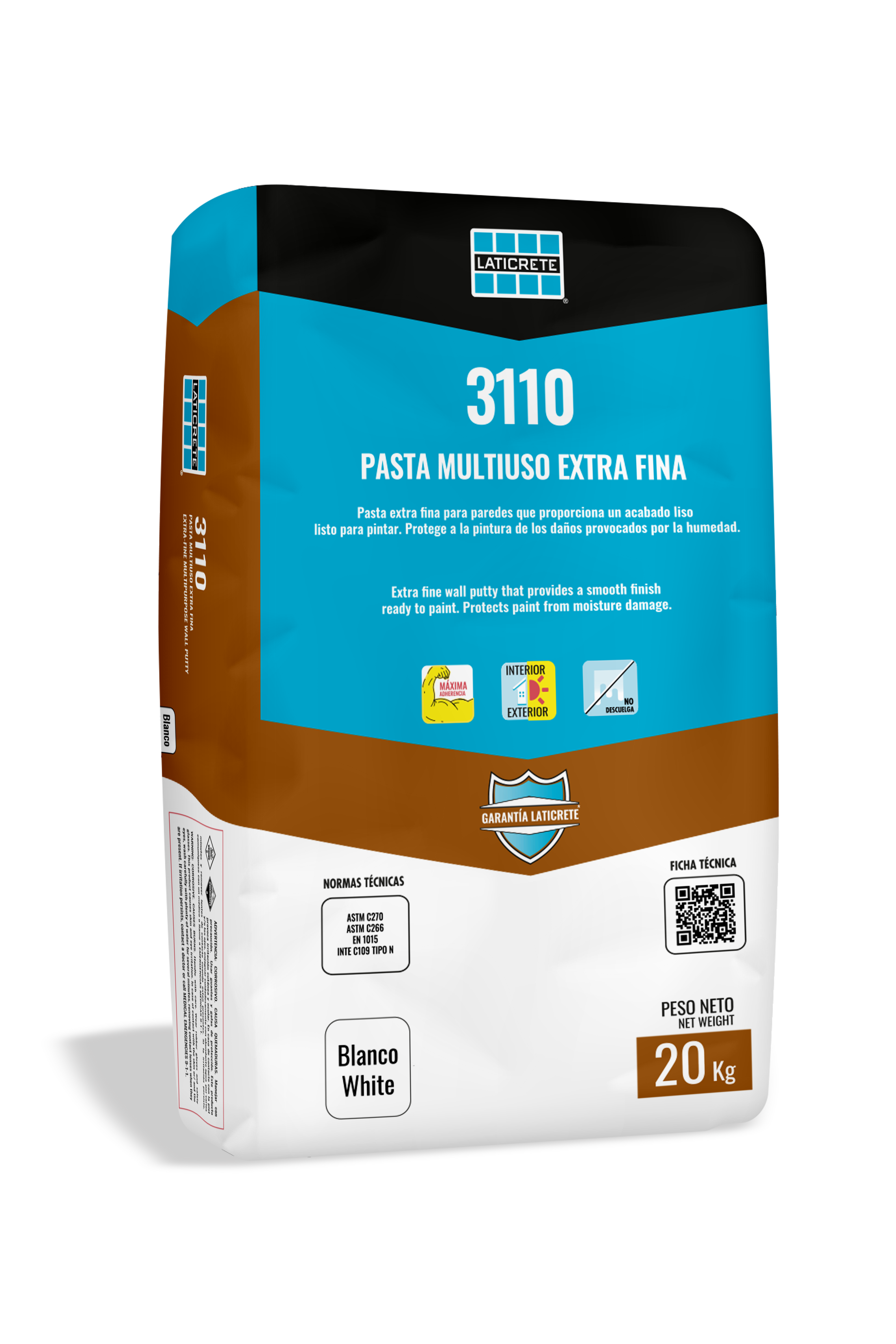 3110 Extra Fine Multi-Purpose Paste for wall finishing, formulated with white cement, carefully selected aggregates and polymers. Provides a smooth finish for painting and protects paints from damage caused by humidity.
