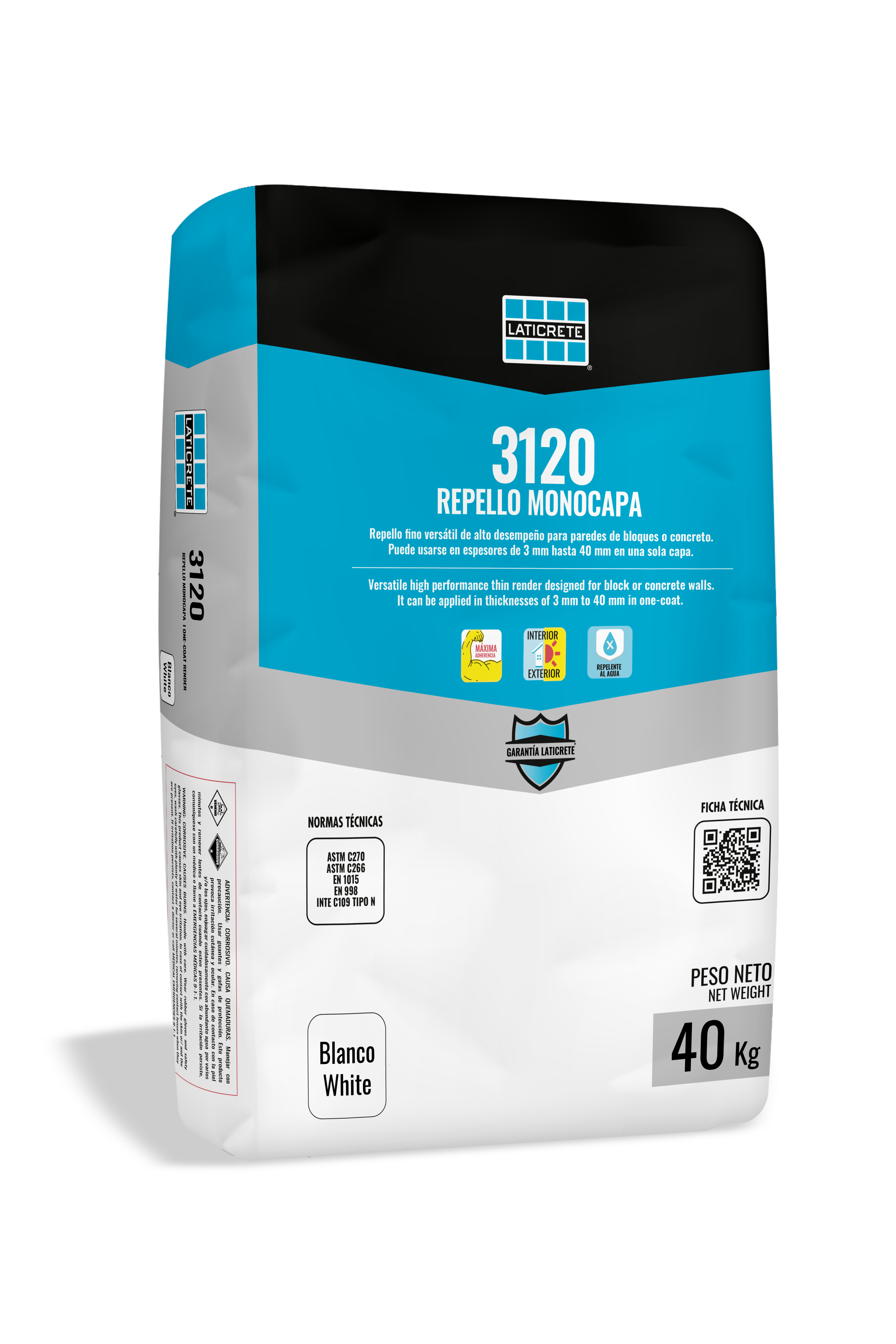3120 One-coat render is a high performance, non-high performance wall coating formulated with hydraulic cement, carefully selected aggregates and additives, providing a smooth finish, ideal for painting or applying nal finishes. It provides a smooth finish, ideal for painting or applying topcoats, correcting verticality problems up to 40mm thick.